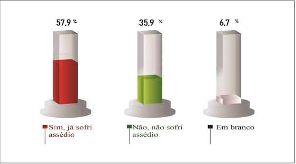 Como já apresentado nesta pesquisa, o assédio moral não é um fato novo na história da humanidade, embora alguns o considerem como tipicamente contemporâneo. Nesse sentido, a partir dos dados coletados, foi possível identificar que 57,9% dos estudantes que participaram da pesquisa possuem a percepção de já terem sido assediados moralmente em suas relações pedagógicas, no contexto do curso de graduação, por algum docente ou outro profissional da educação. Dessa forma, praticamente seis em cada dez estudantes já sofreram assédio moral pedagógico na IES pesquisada. Foram exatamente 162 (cento sessenta e dois) estudantes que responderam afirmativamente que já haviam tido a percepção de serem assediados. Do montante pesquisado, 35,9% declararam nunca terem sido assediados e 6,7% deixaram a questão em branco (GRÁFICO 1).