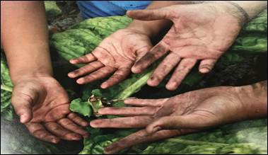 Figura 1 – Mãos de crianças que trabalham no fumo