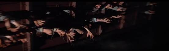 Para o personagem Pink, dessa forma, a rebelião contra a escola implica em sua destruição. Em sua imaginação, as crianças se erguem de seus assentos, quebram as carteiras, derrubam as paredes e acumulam os destroços. Para se libertar da educação e do controle mental dos quais não precisam, é necessário que as crianças derrubem as paredes da escola e até mesmo incendeiem-na. A libertação da disciplina implica na destruição do espaço disciplinar (figura 7 e 8).