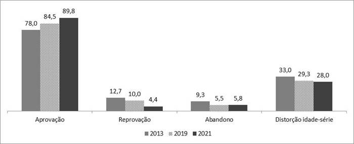 Fonte: Elaboração própria a partir dos microdados de indicadores educacionais – Taxas de Rendimento e Taxa de Distorção idade-série (INEP, 2013-2021a).