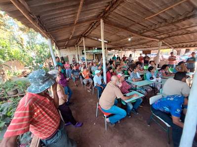 Os pesquisadores e os membros do acampamento desempenharam um papel ativo na construção da planilha. Esse processo representava um verdadeiro ciclo de ação-reflexão-ação (Freire, 1996), partindo de uma prática existente que poderia ser aprimorada. Buscamos esse aprimoramento por meio do diálogo entre os pesquisadores, que possuíam conhecimentos específicos sobre a construção de planilhas eletrônicas, e os participantes da comunidade local, que tinham clareza sobre seus objetivos.