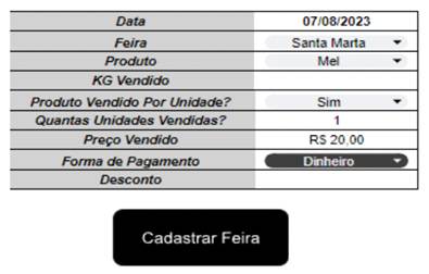 Colaboramos na construção de uma planilha para otimizar o controle de produtos. Havia um caderno em que eram anotadas as entradas e as saídas de produtos para cada uma das feiras.