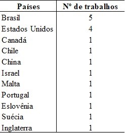 Tabela 1 – Distribuição de trabalhos por países.