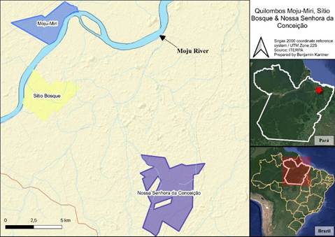 Figura 1 – Mapa dos Moju-Miri, Sítio Bosque e Nossa Senhora da Conceição de Mirindeua.