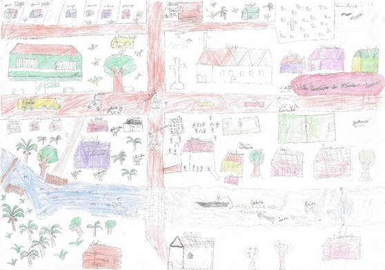 Figura 2 – Mapa desenhado por crianças e adolescentes da comunidade de Sítio Bosque.