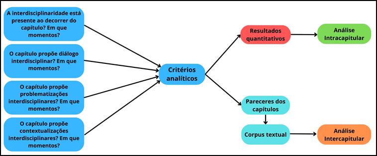 A partir disso, os resultados foram sintetizados em pareceres acerca de cada um dos capítulos dos quatro volumes, buscando destacar especificidades e potencialidades dos temas que remetessem à presença/ausência da interdisciplinaridade, dentro do recorte em que estão inseridos. Esses pareceres surgiram como necessidade específica dessa pesquisa em razão da grande quantidade de dados analisados.