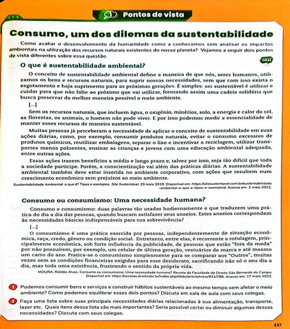 A partir de análises anteriores[ii], identificou-se que a contextualização se configura como um elemento recorrente na coleção de LD. De forma consonante, emerge a seguinte categoria, que evidencia a articulação do elemento contextual sob uma perspectiva interdisciplinar. Nesse cenário, observam-se dois movimentos distintos: em (i) a contextualização é tratada de forma isolada, atuando apenas como um ponto de partida ou aprofundamento para discussões conceituais; no outro (ii), nota-se um esforço em promover a compreensão crítica do(a) educando(a), utilizando o contexto para desenvolver diálogo e problematização sobre a temática.