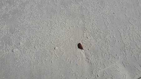 Os pequenos organismos viventes das margens arenosas rendilham-se na superfície (imagens 5 e 6). Desenhos que parecem bordados formam relevos intocáveis, uma vez frágeis naquele espaço. Desenhos como bordados em um gesto livre, somente protocolos de experiência, “constituída por conteúdos e expressões formalizadas em graus diversos como por matérias não formadas que nela entram, dela saem e passam por todos os estados” (DELEUZE; GUATTARI, 2014, p. 17).