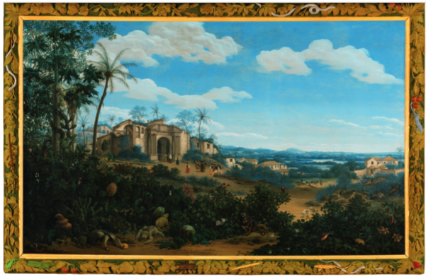 A forma de retratar a vista se baseava na observação dos elementos da paisagem e na sua própria imaginação, permeado pela técnica da tradição paisagística holandesa. Frans Post ilustrava a fauna e a flora, campos férteis, casarões, igrejas e estradas, além de pessoas, compondo uma aparência de relação harmoniosa com a natureza (Erkan, 2012). A apresentação da paisagem experienciada no Nordeste do Brasil em Frans Post ilustra uma colonialidade do olhar, uma ética e estética eurocentrada que visava a exploração de recursos naturais e humanos daquele local.