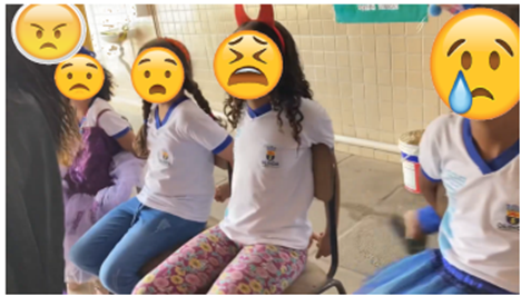 O acesso aos frames em formato de linha do tempo do filme na íntegra está no link: https://drive.google.com/file/d/1Q1RJAYO5nfkzqCr7yh00G6nuvbNMTdCb/view?usp =sharing . De modo a não revelar a identidade das crianças, colocamos emojis que correspondem às suas expressões na obra.