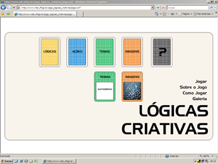 Figura 1– Imagens da interface da primeira versão do Jogo Lógicas Criativas em 2007.