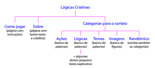 Figura 2. Planejamento da estrutura para o Lógicas Criativas, ainda sem a categoria som.