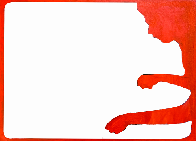 A pintura, nesse contexto, deixa de operar como finalidade e passa a ocupar um lugar relacional. É por meio dela que o resultado da tatuagem - oculto no vídeo - se revela, ao mesmo tempo em que se instaura uma nova camada de representação do processo. A borda pictórica, antes elemento formal, assume aqui o papel de interface: retorna em novo contexto, ampliando seu sentido. Ao se fundir à minha silhueta, essa moldura deixa de apenas delimitar e passa a acolher, sugerindo uma expansão do gesto de introspecção presente no aspecto 4:3 da videoarte (figura 7). Ambos os enquadramentos - o da videoarte e o da pintura - operam como campos de contenção e abertura, buscando equilibrar técnica e subjetividade. A pintura não apenas deriva da videoarte, mas a tensiona, instaurando uma relação de fricção entre linguagens. O que antes se manifestava como ritmo, corte e sobreposição no audiovisual, converte-se agora em gesto, camada e espessura na superfície pictórica. Em vez de uma tradução literal entre os meios, procuro criar zonas de ressonância, onde o sensível emerge não pela fidelidade técnica, mas pelo atrito entre suportes e temporalidades distintas.